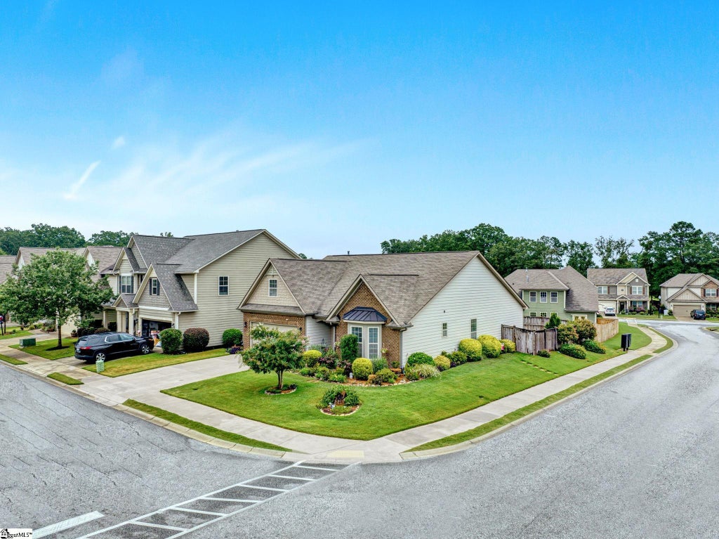 This beautifully landscaped Ranch home offers the ease of single-level living with no stairs upon entry and a thoughtfully designed open, split floor plan. The all-white kitchen features granite counters, a large center island, stainless steel appliances, and a spacious dining area open to the living room with a cozy gas fireplace. The main level primary suite is the perfect private retreat with a walk-in closet, dual sinks with granite counters, a relaxing garden tub, and a separate tiled shower. Two additional bedrooms share a full hall bath with double sinks. A spacious flex room above the garage makes the perfect office, craft room, or media space. Step outside to a beautifully landscaped, low-maintenance, dog-friendly backyard oasis where you can simply sit back and enjoy the array of plants blooming throughout every season. An upgraded covered patio is open to the extended stamped concrete patio that is covered by shade sails. The full privacy fencing make it perfect for relaxing or entertaining. Owned solar panels keep energy bills low. Neighborhood amenities include a pool with cabana. Conveniently located close to I-385 and just blocks from Publix, the Neighborhood Walmart, Starbucks, and medical facilities. Downtown Simpsonville, GSP Airport, several parks, Fairview Road shopping, countless dining options and more are just minutes away. This home is full of upgrades and truly move-in ready.